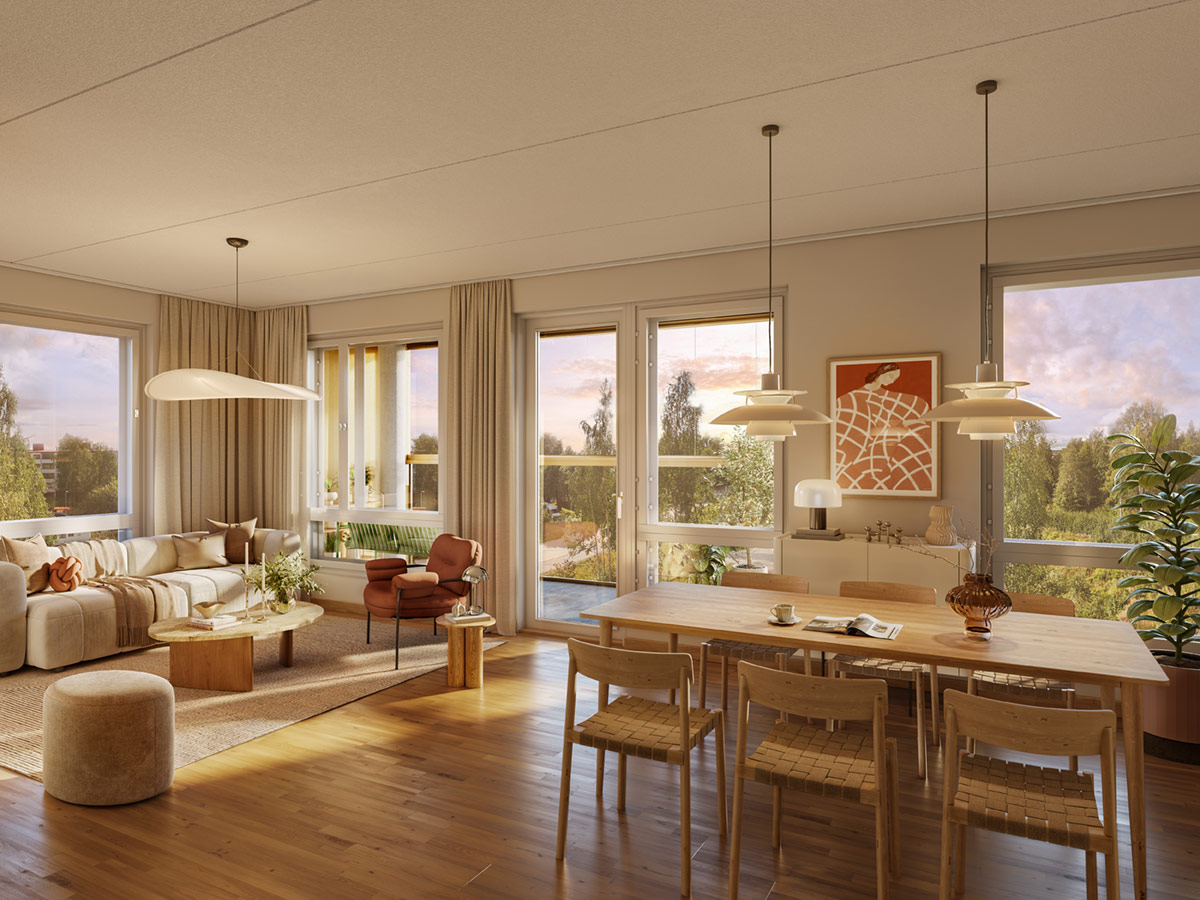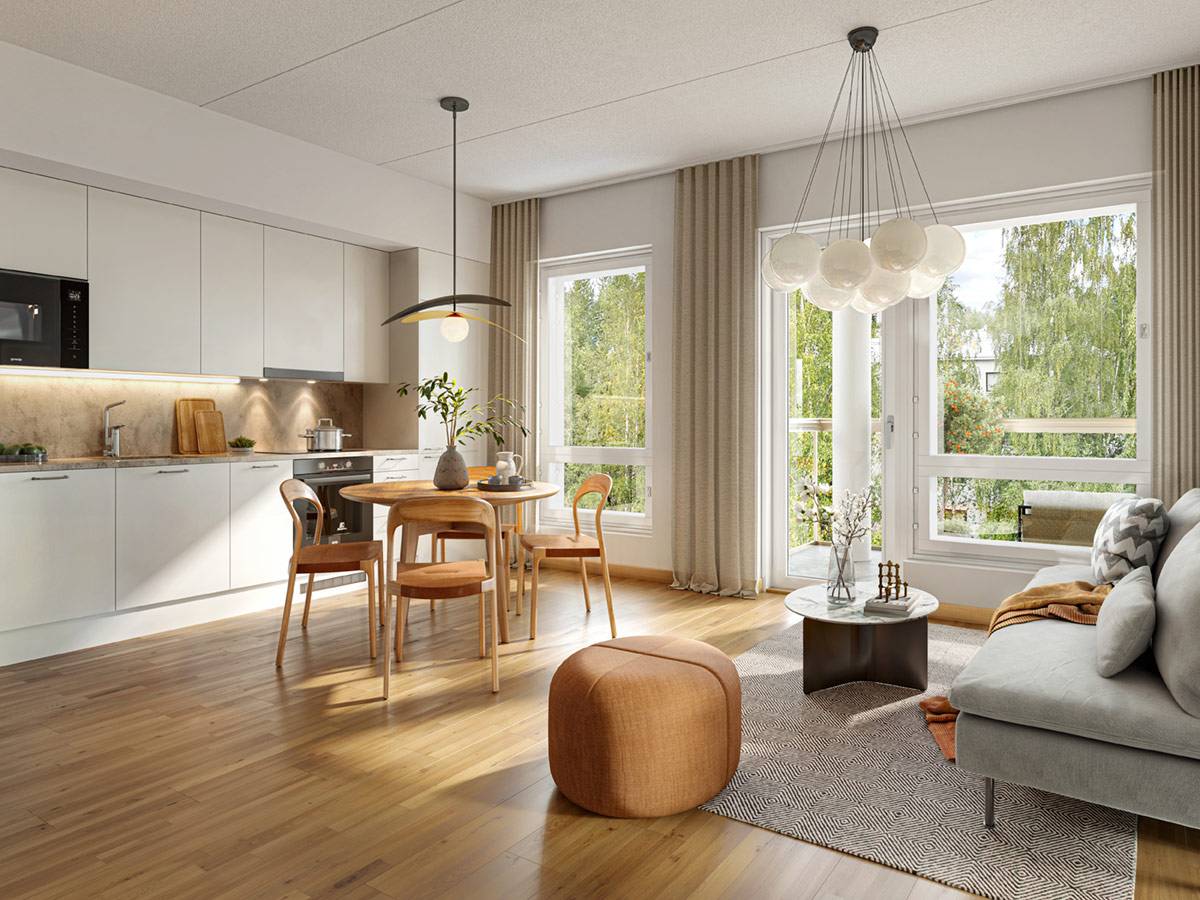 Jyväskylän Hehkun asunnot on suunniteltu nykyajan tarpeisiin: kaikissa kodeissa on lasitettu parveke ja ylimmässä kerroksessa on tavallista korkeampi huonekorkeus. Suuret ikkunat ja vesikiertoinen lattialämmitys, joka tuovat asumiseen ja sisustamiseen mukavuutta ympäri vuoden. Avarat ja helposti kalustettavat pohjaratkaisut mahdollistavat hyvän elämän rakentamisen kaikissa elämäntilanteissa.